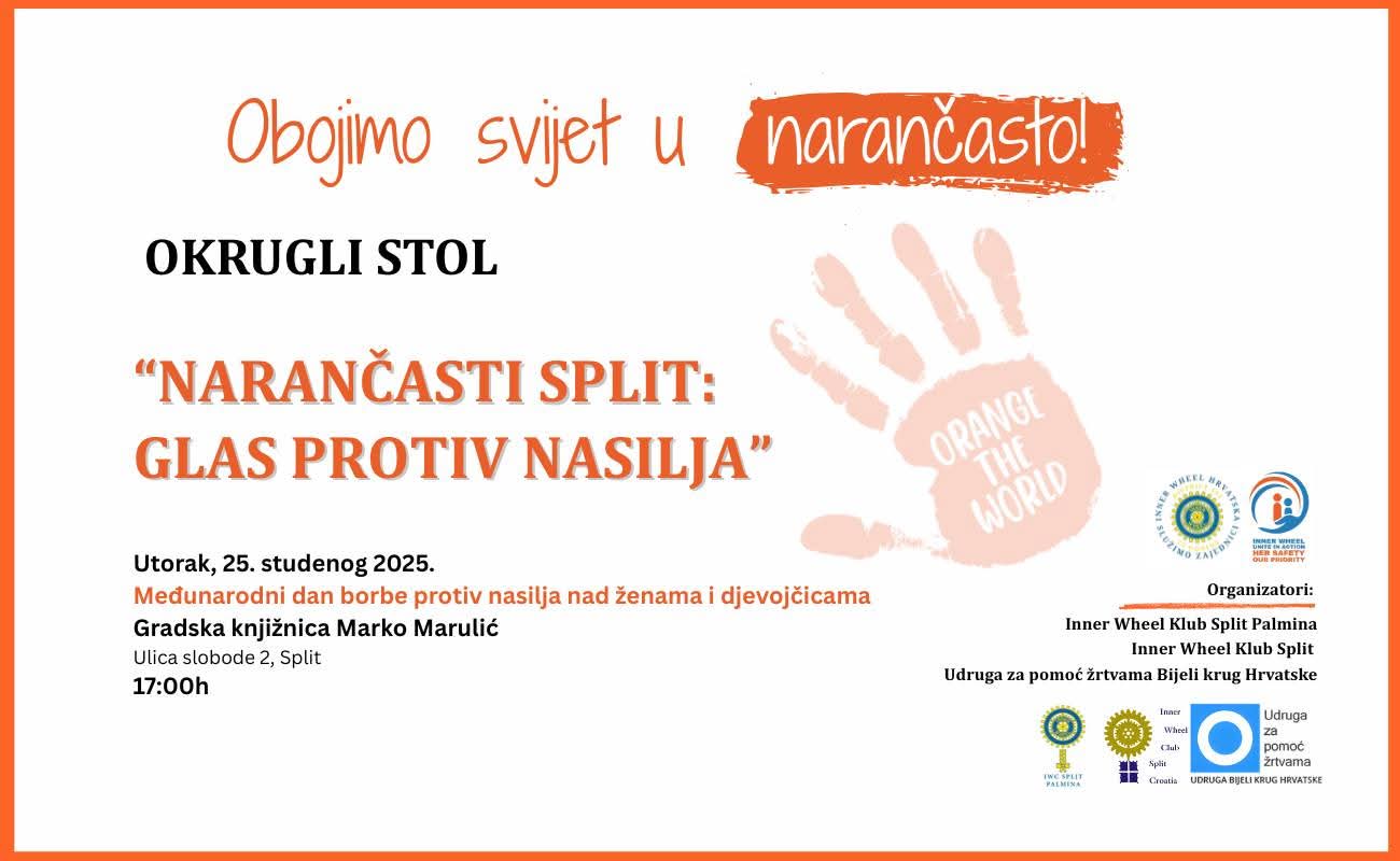 Povodom obilježavanja Međunarodnog dana borbe protiv nasilja nad ženama (25. studenoga 2025.), Inner Wheel Club Split Palmina, Inner Wheel Club Split i Udruga za pomoć žrtvama Bijeli krug Hrvatske organizirali su okrugli stol pod nazivom „Narančasti Split: Glas protiv nasilja“ s ciljem podizanja svijesti javnosti o problemu nasilja nad ženama, razmjene iskustava i znanja između […]